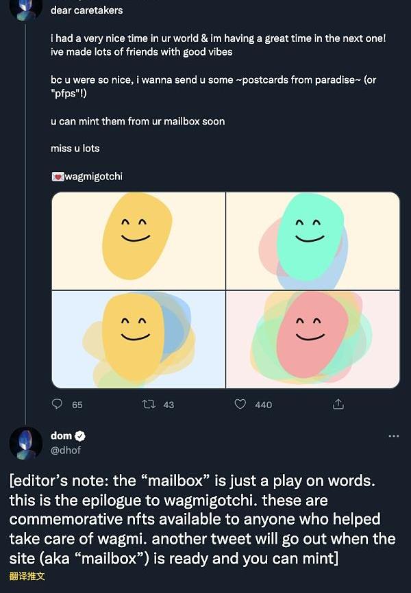 小幽靈活了一周左右離開了世界,然后dom做了個紀念NFT來紀念給予??的參與者。