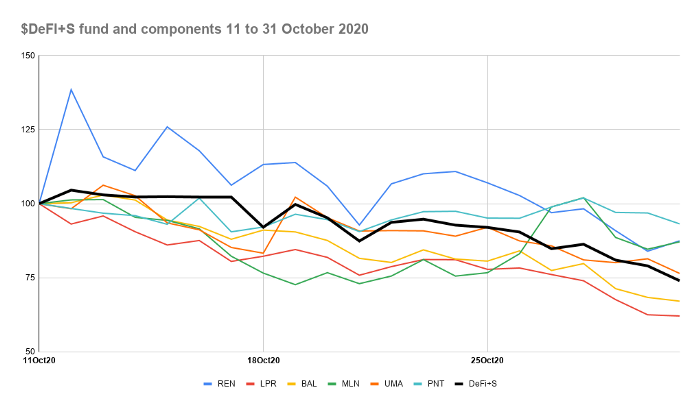 圖5:2020年10月11日以來$DeFi+S和成分Token的表現。