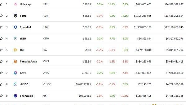 DeFi項目鎖定資產前十排名及鎖倉量,數據來源:Debank