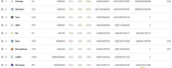 DeFi項目鎖定資產前十排名及鎖倉量,數據來源:Debank