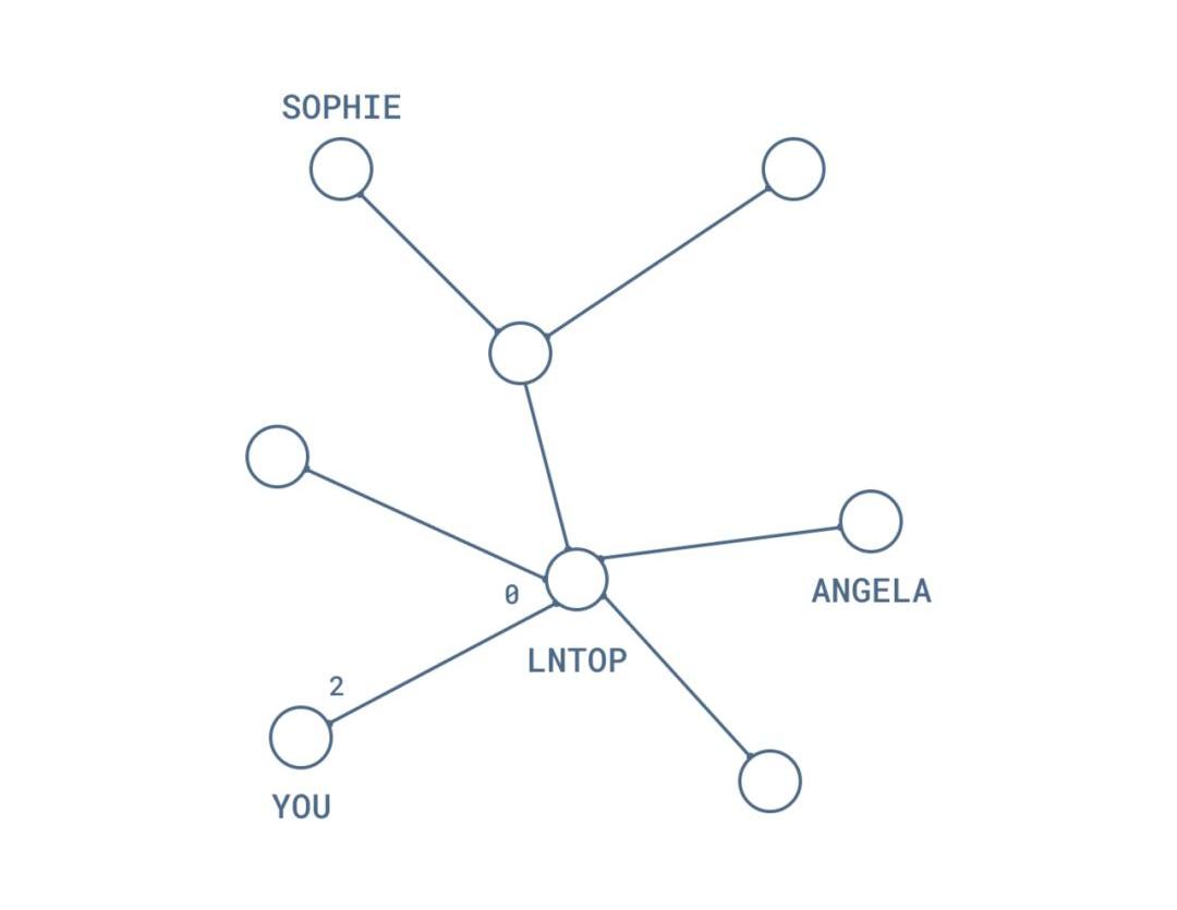 假設你想通過閃電網絡來賣貼紙。那么,你需要與至少一個閃電網絡節點建立連接。你仔細挑選了一個節點,保證這個節點可能跟你的潛在客戶Sophie和Angela相連。我們把這個節點叫做「lnTop」。