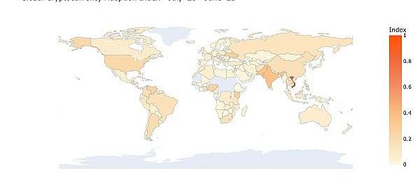 排名中的國家從高到低依次是:越南、印度、巴基斯坦、烏克蘭、肯尼亞、尼日利亞、委內瑞拉、美國、多哥、阿根廷、哥倫比亞、泰國、中國、巴西、菲律賓、南非、加納、俄羅斯、坦桑尼亞、阿富汗。