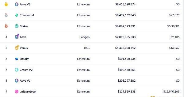 DeFi排名前十鎖倉量數據來源:DeFiPluse