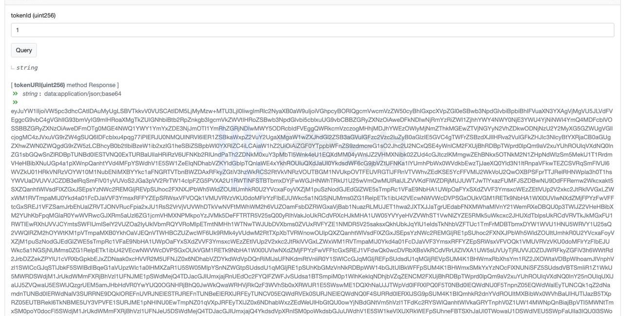 下圖是在其tokenURI函數查詢返回的結果截圖。