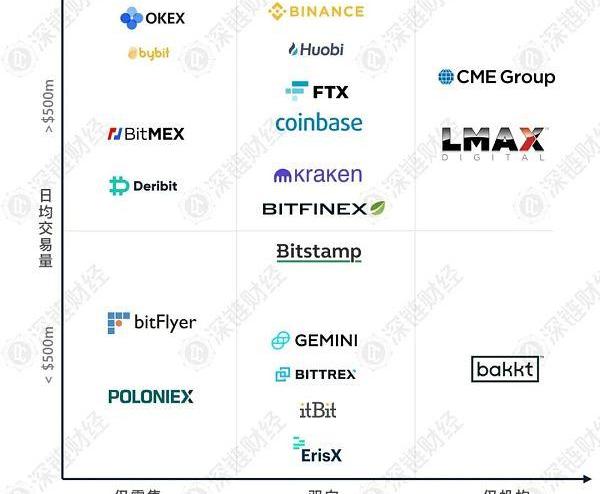交易所的劃分方法很多,最重要的標準就是客戶定位。交易所有的僅面向零售用戶,例如Bybit、BitMEX;有的僅面向機構用戶,如LMAX、芝商所;大多數是雙向的,如幣安、火幣、FTX、Coinbase、Gemini等。