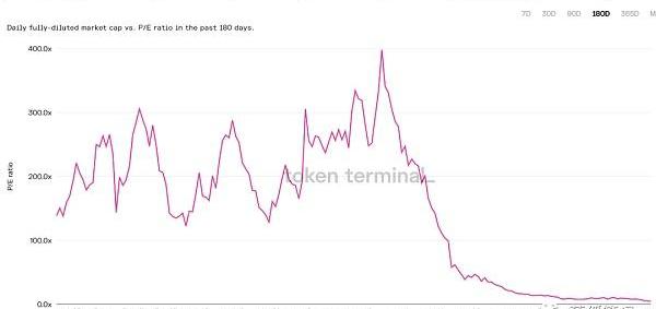 可以看到Axie的P/E率不斷下降,其P/E率當前不到10,在整個加密項目中排名第一,由此也能看出其收入規模。