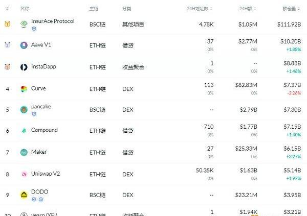 鎖倉量排名前十的借貸平臺排名來源:DeFibox