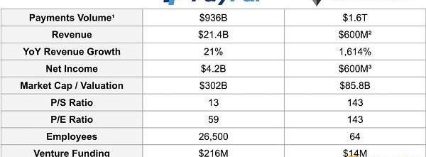 以下是Paypal與以太坊作為轉賬網絡的對比。