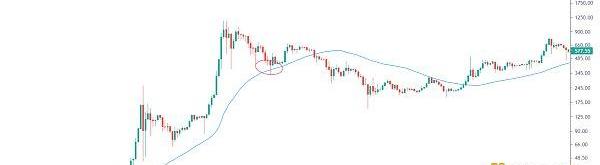 17年牛市結束,價格回落至50均線一帶,迎來了周線級別的大反彈,區間漲幅超50%,這一次比較強勢的反彈發生在BTC所謂的死亡交叉之后,也就是日線MA50死叉MA200均線,而目前BTC這兩均線同樣已經死叉。