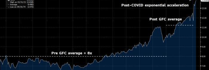 在最近的一次采訪中,傳奇投資者斯坦利-德魯肯米勒指出,企業債務人在2020年的凈借款為1萬億美元。我在這個行業工作,親眼目睹了這種瘋狂的情況。正如德魯肯米勒所指出的,在歷史上,我們從未見過私人債務在去年之前的經濟衰退中上升。通常情況下,在經濟衰退中,私人債務崩潰一般只高達5000億美元,所以我們談論的是在這次經濟衰退中,相對于正常模式,杠桿率增加了3倍。