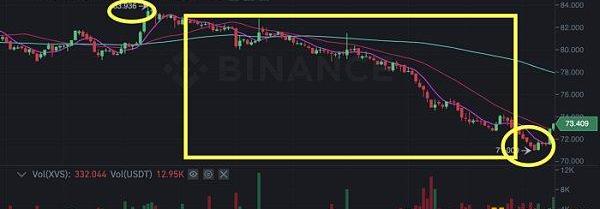 大約在17:58,第一次清算發生,然后XVS到XVS清算發生,獲得了超過500萬美元的免費XVS。這開始了級聯的自由落體。
