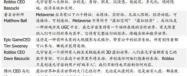 對于元宇宙的概念的看法并不統一,我們整理了市場上的一些觀點: