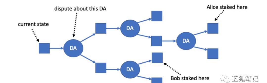 Arbitrum采用的是多輪互動協議來解決爭議,將規模大的爭議細分成小的爭議,直到找到最關鍵的那一步,然后再通過以太坊合約來確定它是否正確。通過拆分爭議,Arbitrum試圖實現更高效的解決方案。