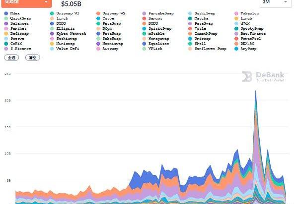 2、過去24小時去中心化交易所的交易量:50.5億美元