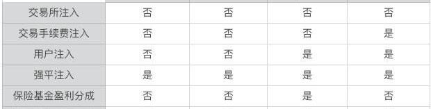 我們將中心化衍生品交易所和去中心化衍生品交易所放到一起,可以做一個保險基金的對比,首先對比了基金的來源,其次對比了是否對保險基金的盈利給出分成。