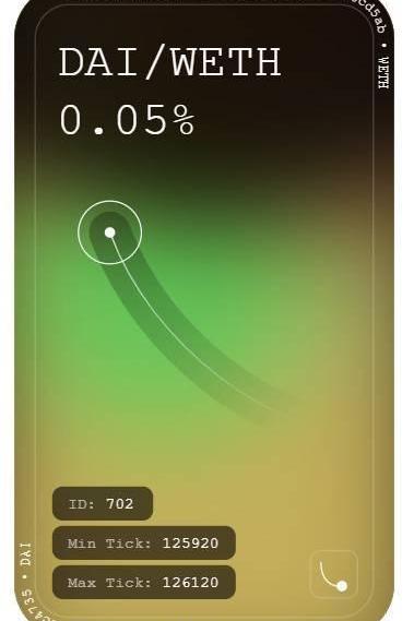 由于UniswapV2采用整體資金池模式,LPToken是標準的ERC20代幣。但在V3中,每個LP基于不同的價格區間創造流動性,因此提供的流動性都采用ERC721代幣作為權證,Uniswap也會為每一位流動性提供者發放定制化的NFT卡片。