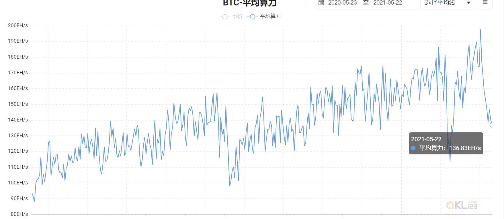 XRP/HKD-1.14%5月21日,在國務院副總理、金融委主任劉鶴主持召開的國務院金融穩定發展委員會第五十一次會議上,明確提出要堅決防控金融風險,強化平臺企業金融活動監管,打擊比特幣挖礦和交易行為。受此消息影響,比特幣及秘密貨幣普遍瀑布式暴跌。拋開價格影響,比特幣算力產業影響如何?以下是我們看到的幾個公開申明。比如萊比特礦池決定停止為中國大陸境內客戶提供礦機代購服務。比如,火幣礦機商城決定暫停為中國大陸境內的用戶提供相關服務。我們再通過一組鏈上數據來看看整體情況如何。首先看全網算力。