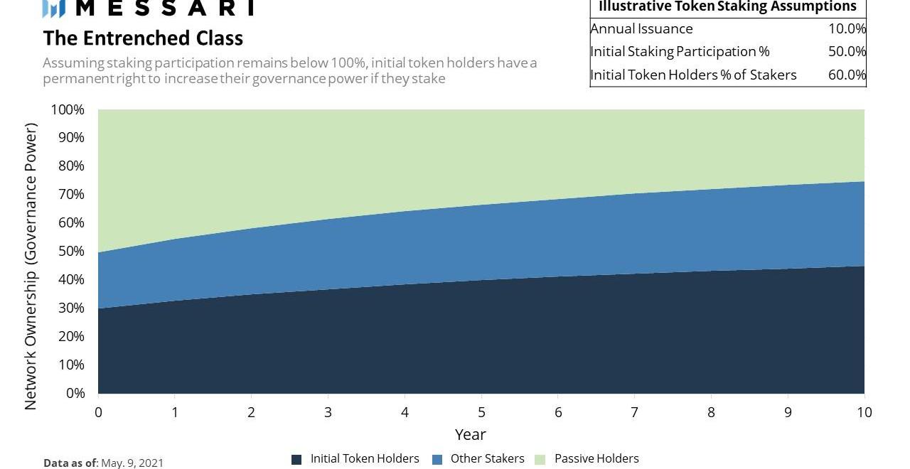 考慮到PoS系統中的大多數代幣不僅擁有新發行的權利,而且還擁有網絡費用和投票權時,這種現象對于加密經濟中權力和財富如何隨著時間積累產生了重要影響。