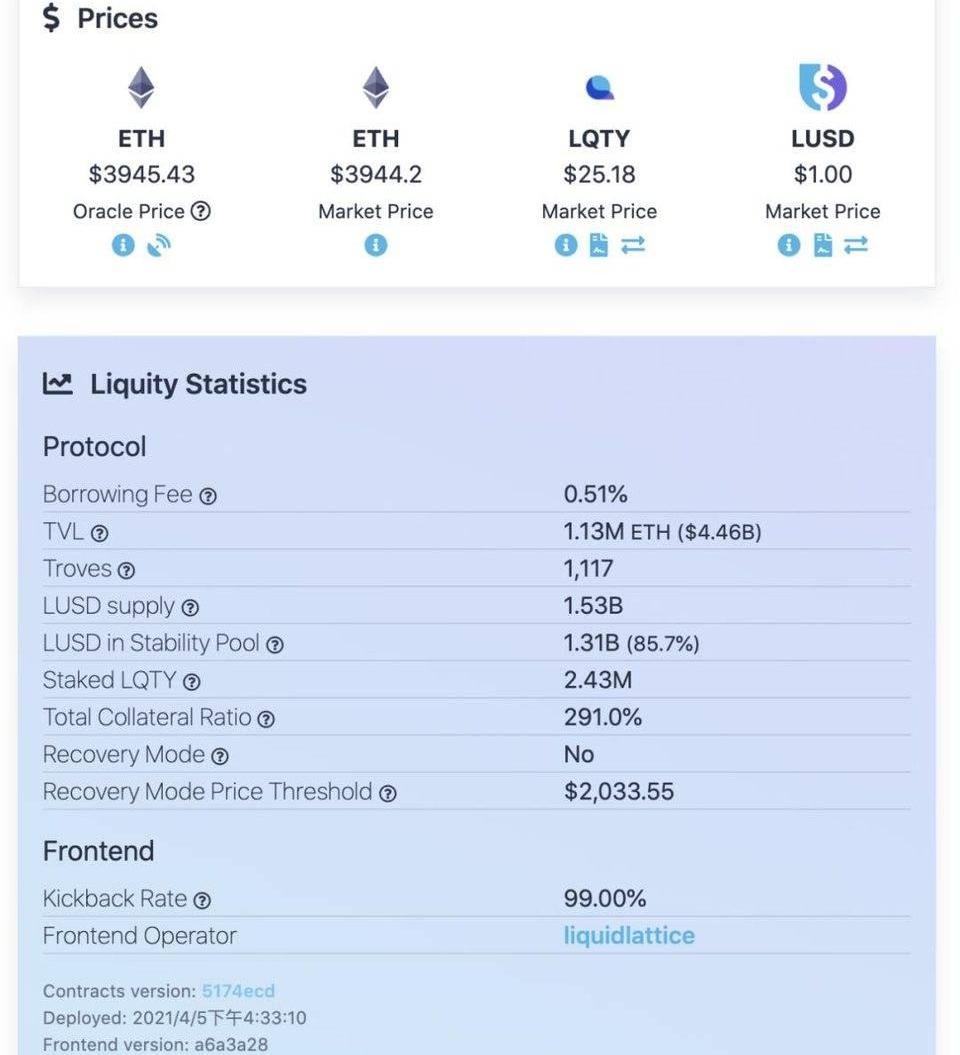 Liquity:改良版MKR吧,更低的抵押率,也就是ETH釋放更多的生產能力,跟MKR還有不一樣的是貸款是無息的,取而代之的是用戶在借款時用一筆0.5%的費率代替,我們現在對這種項目理解起來都比較容易,因為有了MKR,COMP,AAVE的市場教育,并且產品也簡單,項目整體需要一定的時間消化上線的高估值以及在行業內拓展邊際,目前收益率30%左右,考慮到200%的抵押率,單幣ETH收益率就是15%,可以跟stETH收益率做比較,不過這個相對簡單些。