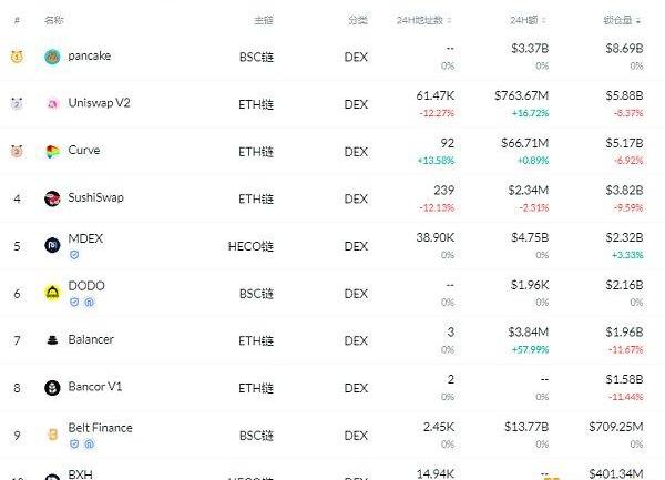 過去24小時去中心化交易所的交易量數據來源:Debank