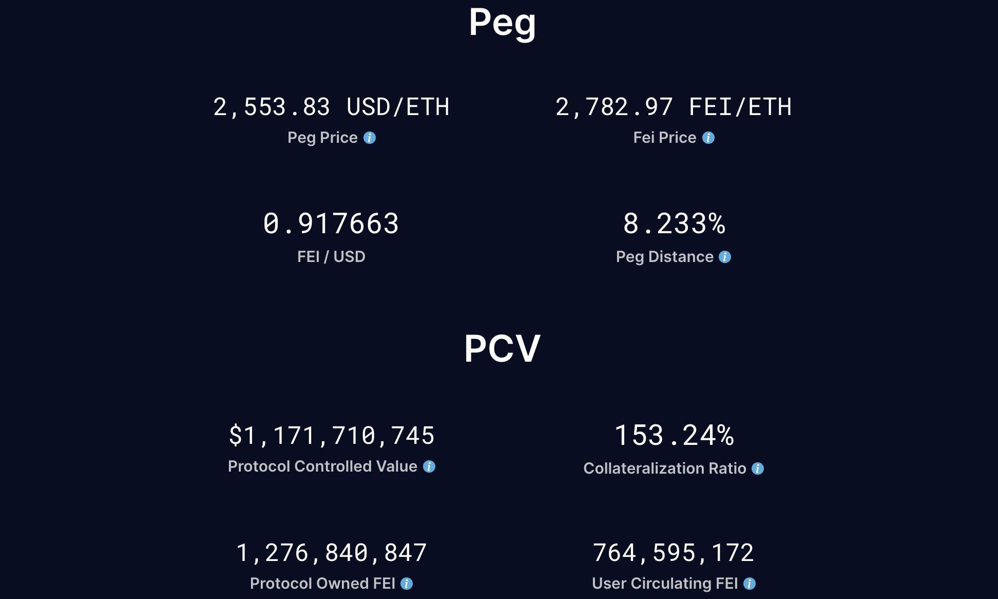 FEI的官方數據統計顯示,截止27日下午2:30,FEI的價格為0.917663美元,用戶手中流通量為7.646億個。以ETH2550美元的價格,按0.95美元的價格贖回,30萬個ETH總計可以贖回超過8億枚FEI,已經超過用戶手中的總流通量。即使按照ETH近期的最低價1946.8美元計算,也能贖回6.15億枚FEI。