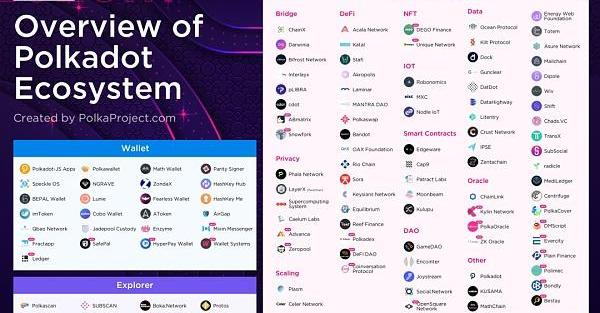 目前與Polkadot相關的生態應用有300多個,包括基于Substrate開發的項目、工具、論壇、錢包等,又可細分為資產橋、隱私、DeFi、NFT等。波卡生態項目一覽:https://www.polkaproject.com/