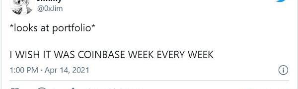 在我們回到Coinbase之前,有一個快速的附帶說明--加密市場本周由于里程碑事件一直很火熱:燈塔級別的加密公司的公開上市。