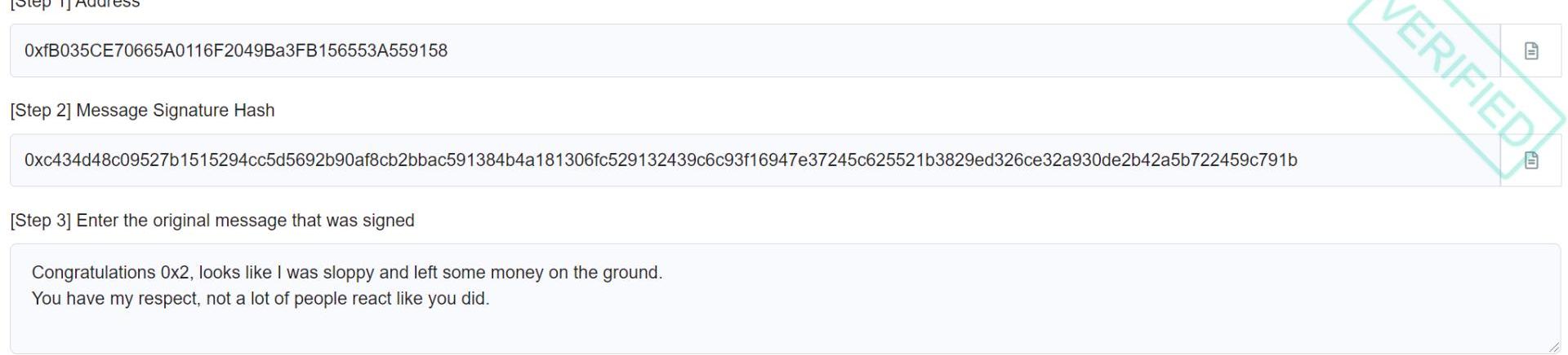 恭喜你0x2,我的馬虎使我失去了這些賺錢的機會。我尊敬你,沒有多少人有你這樣的反應。