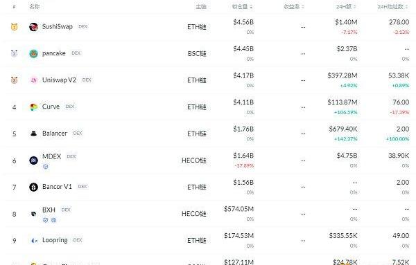 過去24小時去中心化交易所的交易量數據來源:Debank