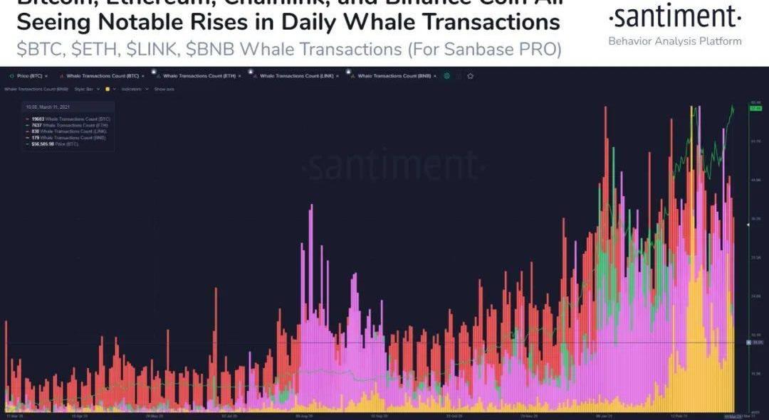 此外,巨鯨的交易數量也在上升,Santiment最近也強調了這一點。