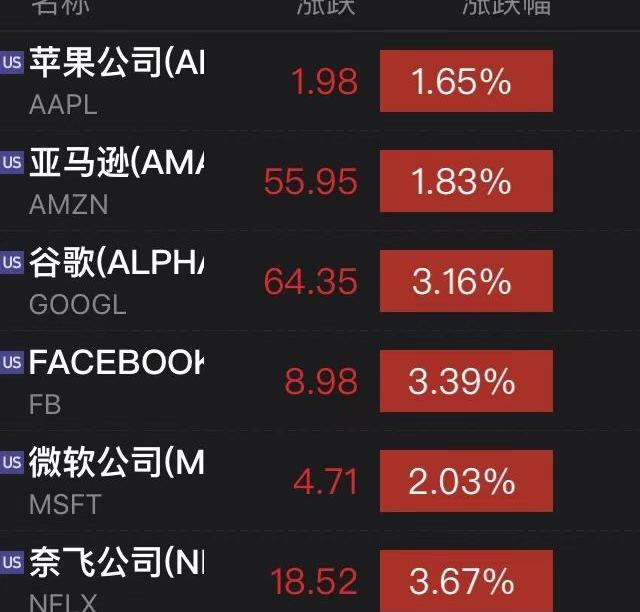 美股大型科技股集體上漲,Facebook、奈飛和谷歌母公司Alphabet漲超3%,微軟漲超2%,蘋果、亞馬遜漲超1%。芯片股全線上漲,臺積電漲近6%,美光科技、英偉達、AMD漲超4%。