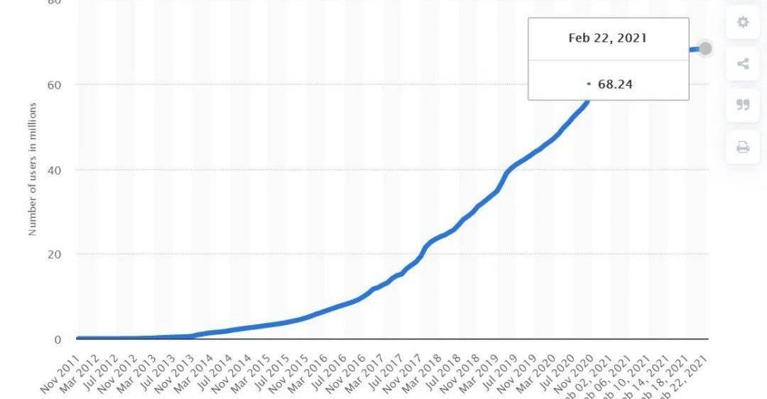 事實上,Statista.com的數據表明比特幣的區塊鏈錢包數量從2018年1月的2200萬個增加到2021年2月底的6824萬。