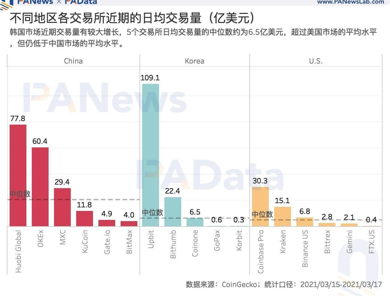 PAData根據CoinGecko為交易所劃分的所屬地區,以及交易所的地區市場聲量和主要用戶所屬地區,選擇了中美韓三國共17個交易所進行觀察,深度分析了近期交易數據后發現: