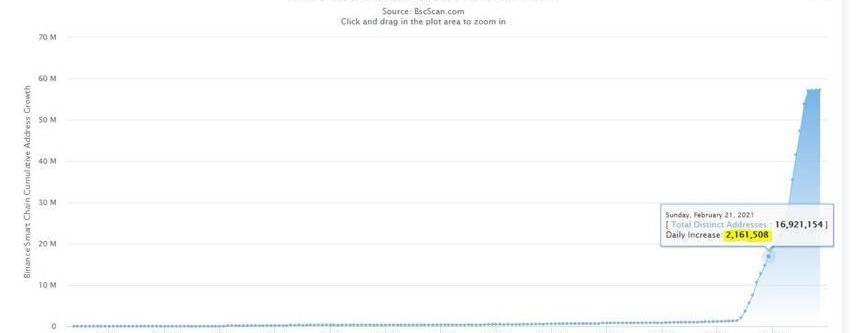 我們發現,幣安智能鏈被詬病最多的一個「可疑活動」就是其唯一地址活動,該指標數據之所以會出現激增,主要是因為大量CHI代幣被鑄造出來,之后BSCscan調整了算法并排除CHI合約生成的地址,該指標很快就下降并回歸到正常態勢。