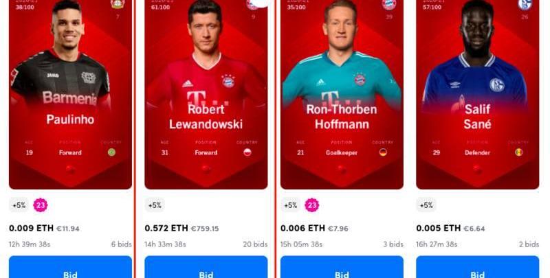 除了定向競拍某張卡片之外,玩家還可以直接打包競拍一些隊伍主題卡包,競拍成功后可直接獲取卡包內的全部五張收藏卡。不過,卡包的競拍價格一般都要貴于單張球星卡,且卡包內的組合是由官方決定,搭配著一兩張高人氣卡出售的其他卡片有時會稍顯吸引力不足。如上圖所示,這組已被叫到了0.312ETH的卡包已收到了24份競拍,但可能大多數玩家都是沖著薩拉赫去的。?