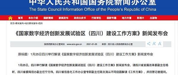 在四川省第十三屆人民代表大會第四次會議上,四川省人民政府省長黃強表示,2021年將加快數字經濟創新發展。建設國家數字經濟創新發展試驗區,培育5個左右數字經濟發展先導示范區和10個左右數字經濟產業示范園區。實施數字經濟賦能升級工程,促進5G、大數據、區塊鏈、超高清等新一代信息技術與傳統產業融合發展,推動“芯屏端軟智網”全產業鏈發展。