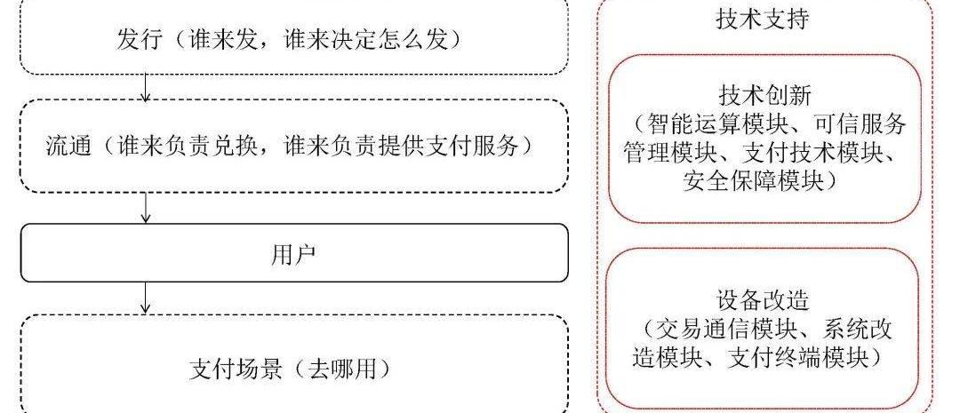 為支撐這種支付方式,并圍繞這些支付方式構建適合的金融體系,流通機構必須做出相應的技術變革。包括銀行核心系統、數據庫、POS機等,相關行業的業務流程也會發生變化,如征信行業可以利用央行批準的更詳實的交易數據為信貸行業提供更合理的用戶信用評估。具體改造內容可分為安全保障模塊、系統改造模塊、交易終端模塊和支付技術模塊四部分。