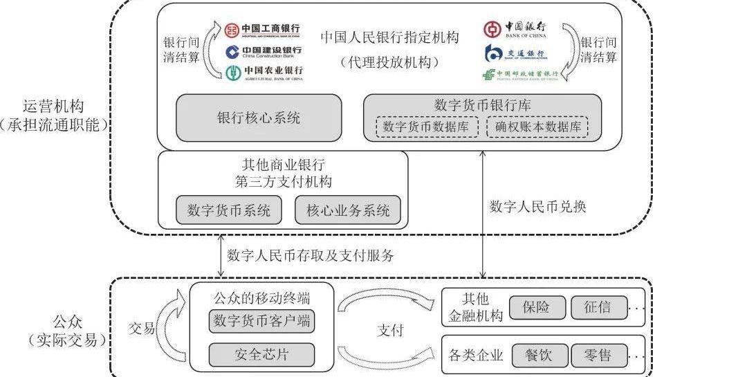 投放層的主體包括中國人民銀行和指定機構,主要解決“怎么發”的問題,以實現上文所述數字人民幣定義的前兩個層面——貨幣定位和發行管理。