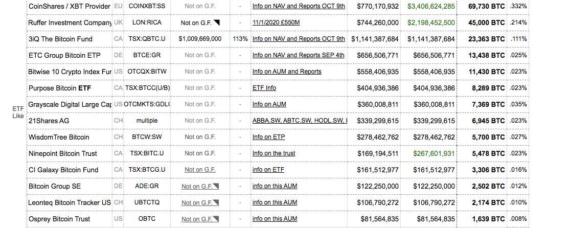特斯拉、MogoFinding、OspreyBitconTrust、,EvolveBitcoinETFNinepointBitconTrust等公司,信托公司和對沖基金都紛紛加入。當然,最大的持有者是灰度,擁有649,130個比特幣,占2100萬個供應上限的3.09%。