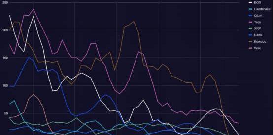 ?EOS、Tron、XRP、Qtum、Komodo、Nano、Handshake和WAX的提交量都下降了50%或更多。