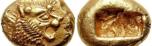 Lydian錢幣,約公元前600年。資料來源:Romancoins.info