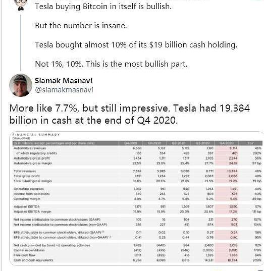 該公司的比特幣交易經歷了數月的猜測,當時首席執行官埃隆·馬斯克前往Twitter討論該加密貨幣。2020年末,MicroStrategy的Saylor提議與Musk共享他的比特幣投資“劇本”,此前他認為進入比特幣將使特斯拉股東獲得“1000億美元的青睞”。