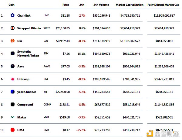 DeFi項目鎖定資產前十排名及鎖倉量,數據來源:Debank