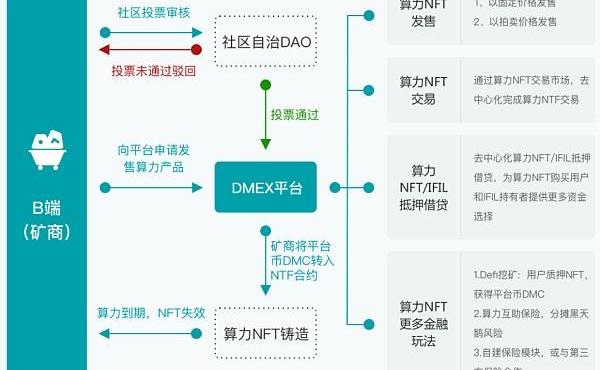 2)NFT,DMEX平臺把有效算力通證化為NFT,從而實現算力NFT的去中心化發售和轉讓,讓算力更加容易流通。
