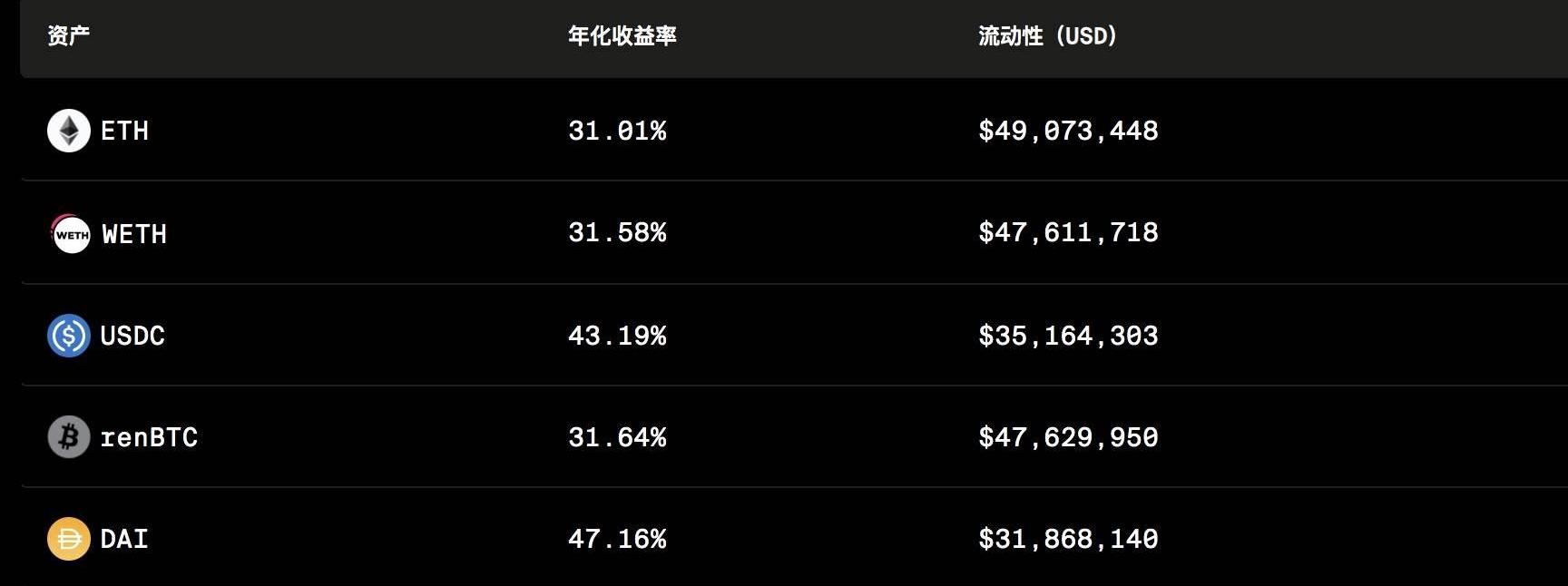 比如,我可以使用DAI穩定幣參與挖礦,當前顯示的年化收益為47.16%,這是與池子的資產規模及ROOK代幣的價格掛鉤的,也就是說,假設ROOK代幣價格上漲,則顯示的年化收益也會越高,反之則會越低。