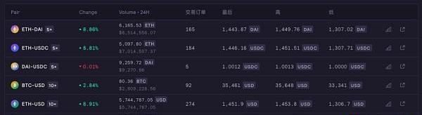 現貨交易方面,dYdX目前僅提供ETH-DAI、ETH-USDC、DAI-USDC三個交易對。?
