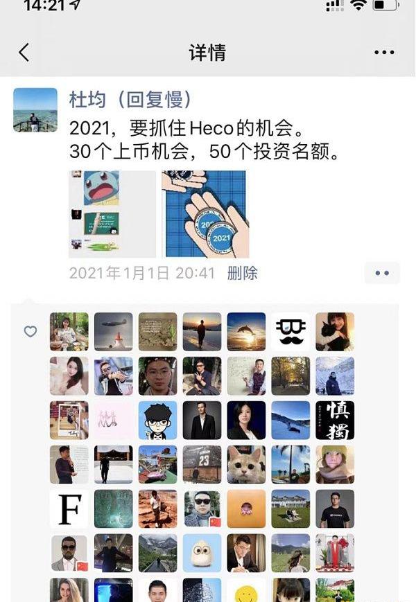 值得一提的是,不久前,火幣聯合創始人杜均在朋友圈表示,只根據鏈上數據,火幣將投資50個火幣生態鏈Heco上的項目,上線30個資產。