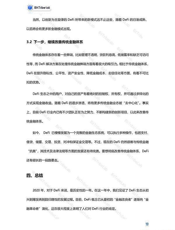 本報告從宏觀的角度分析了2020年DeFi市場的整體發展狀況,對DeFi生態的具體表現作了詳細梳理并對DeFi的未來發展進行了展望,以期讀者能夠全面了解DeFi行業的發展現狀以及未來DeFi可能演變的新趨勢。