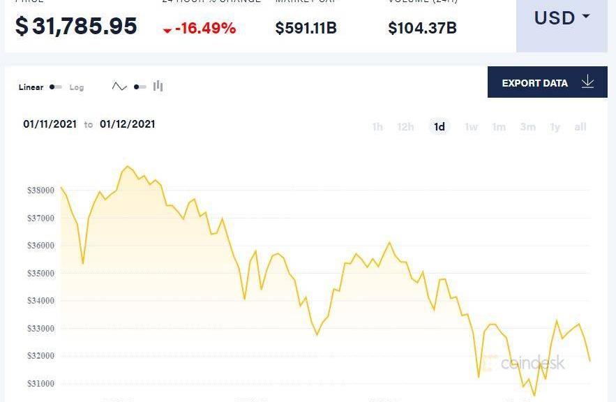 此前,在截至北京時間周一傍晚18點25分,比特幣于24小時內迅速跌破4萬至3.3萬美元數道關口,相當于抹去之前五天的全部漲幅。美股盤初比特幣繼續下跌,并跌破3.1萬美元。