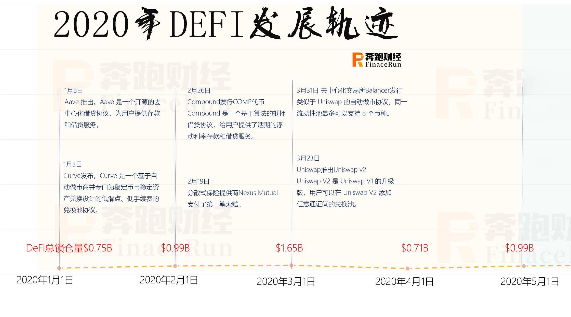 以下是奔跑財經繪制和整理的2020年DeFi領域發展軌跡: